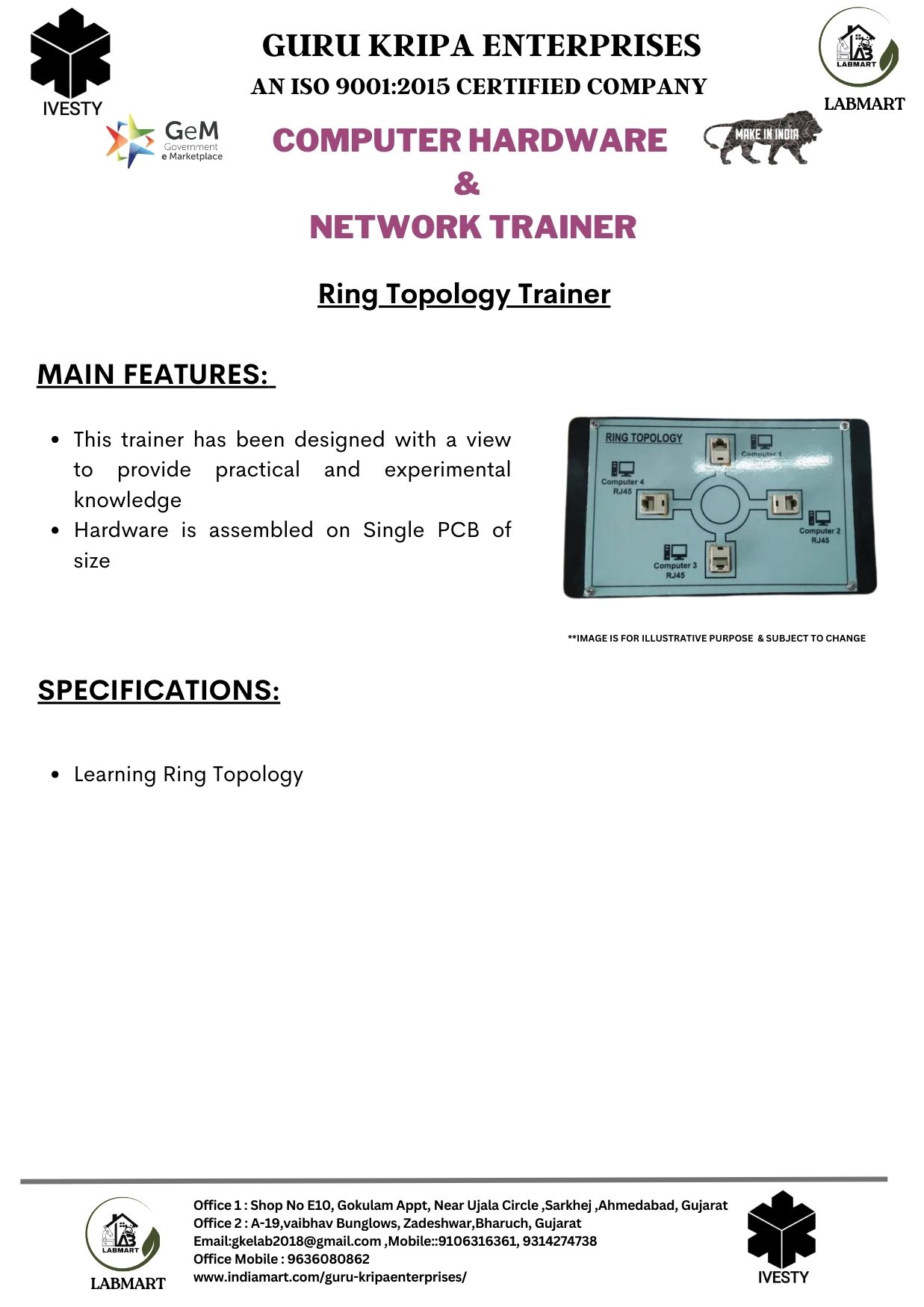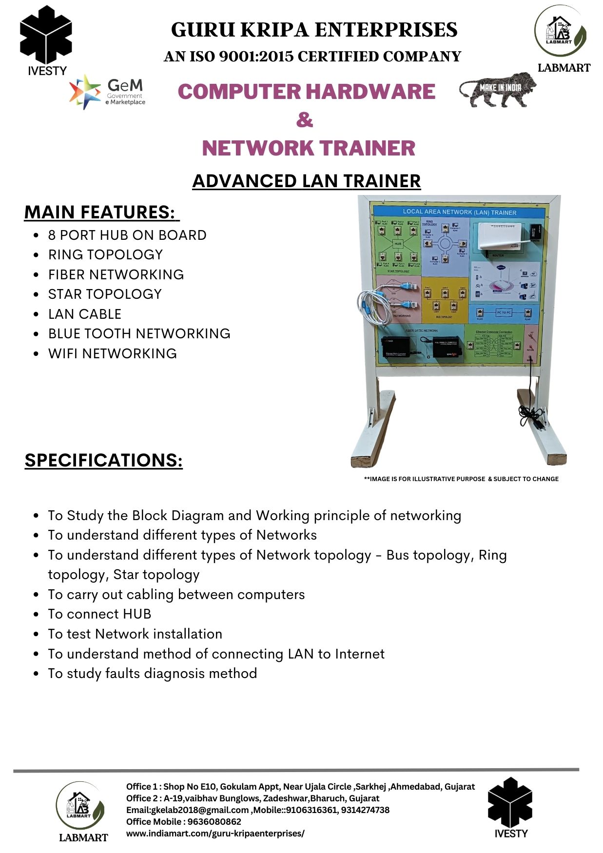 We are making Labs affordable and accessible to all. We provide complete 360-degree labs solution starting from designing the labs, consulting, and supplying required lab equipment, installing, and training of equipment. We have served more than 1000+ institutes across India making more than 1800+ laboratories. Our clients include DRDO, NITs, POLYTECHNICs, INDUSTRIAL TRAINING INSTITUTES, KENDRIYA VIDYALAYJNV, The Bhawanipur education society, State Autonomous Medical college Shahjahanpur, ONGC & many more.