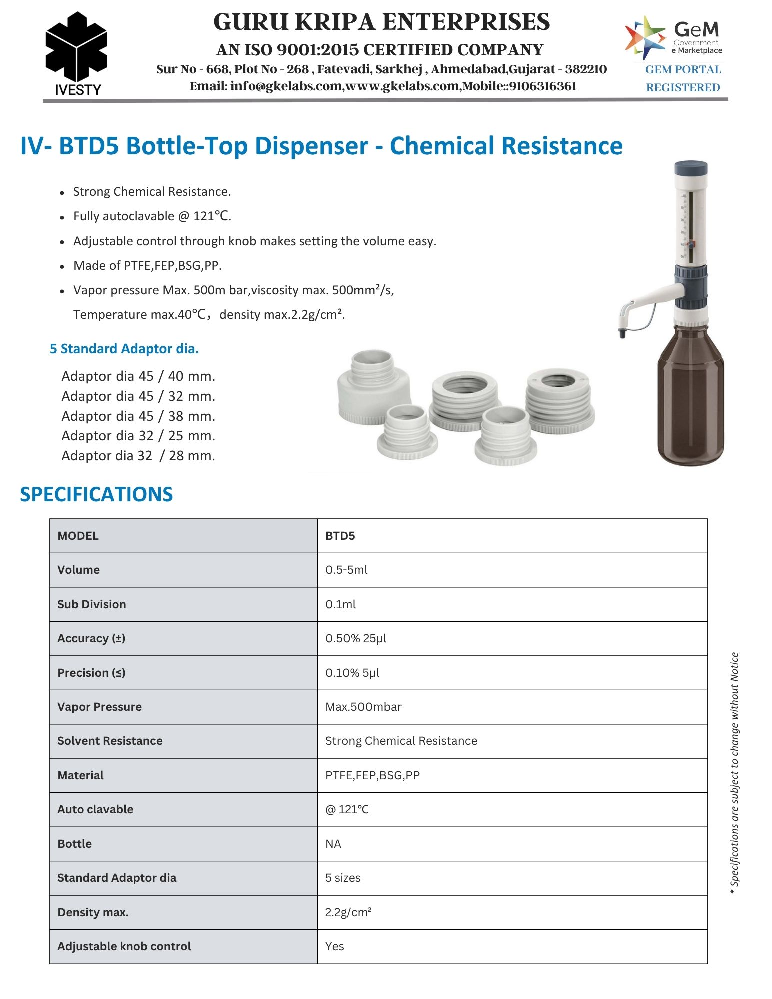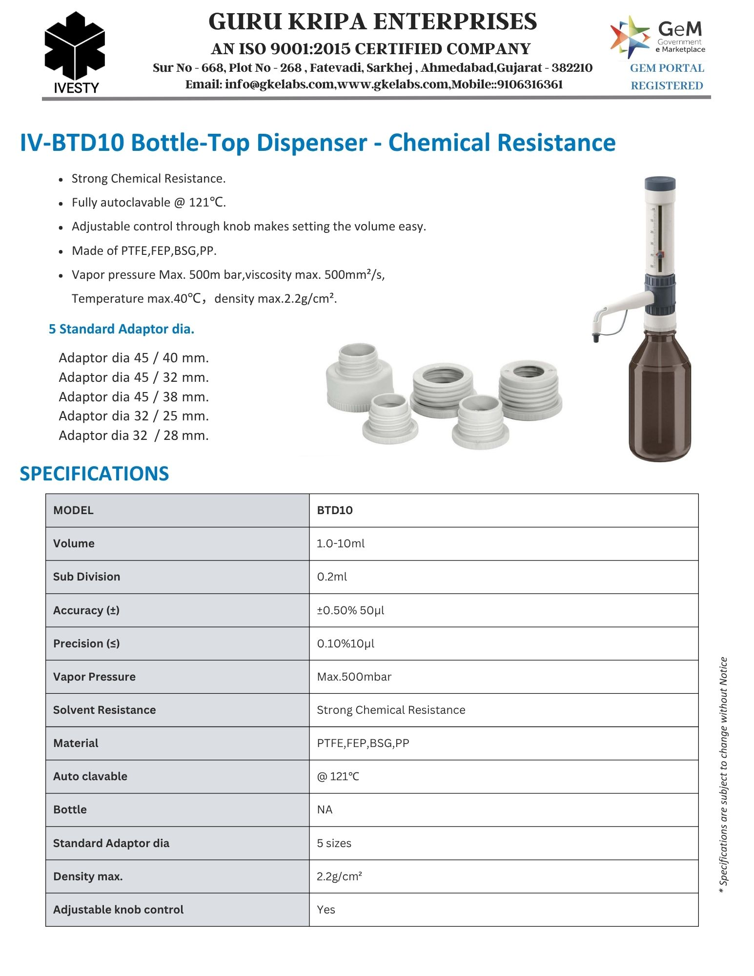 Bottle-Top Dispenser - Chemical Resistance