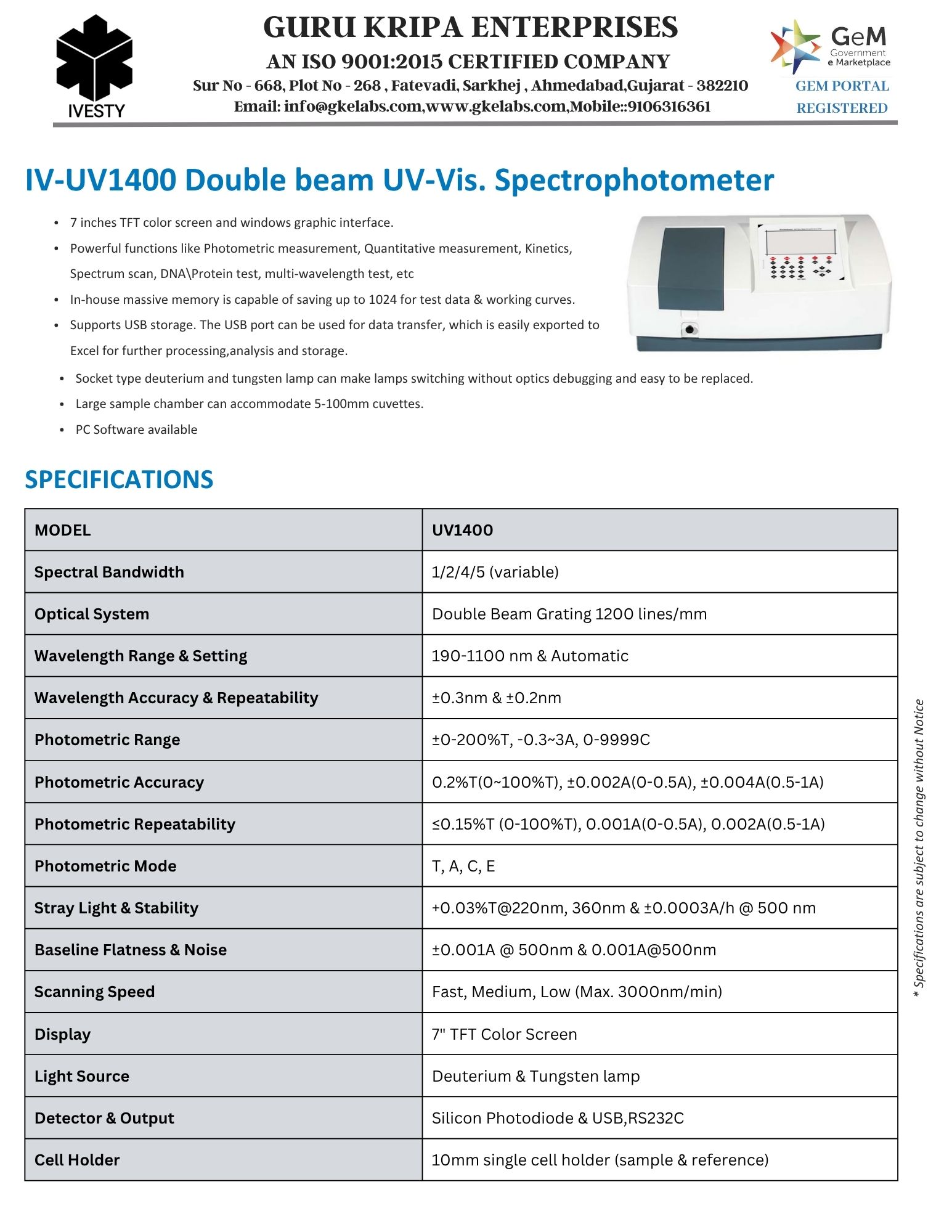 UV-Vis. Single Beam Spectrophotometer