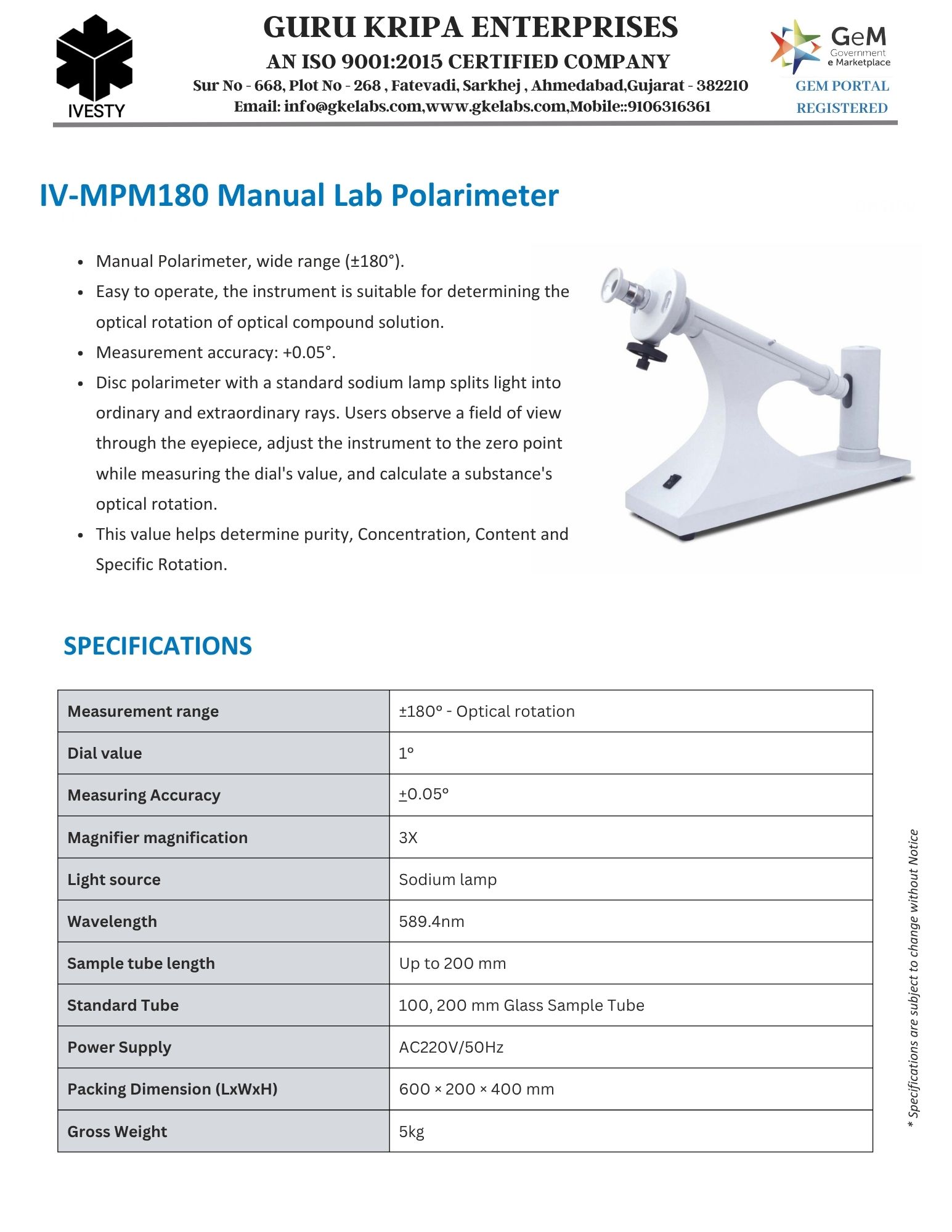 Manual Lab Polarimeter