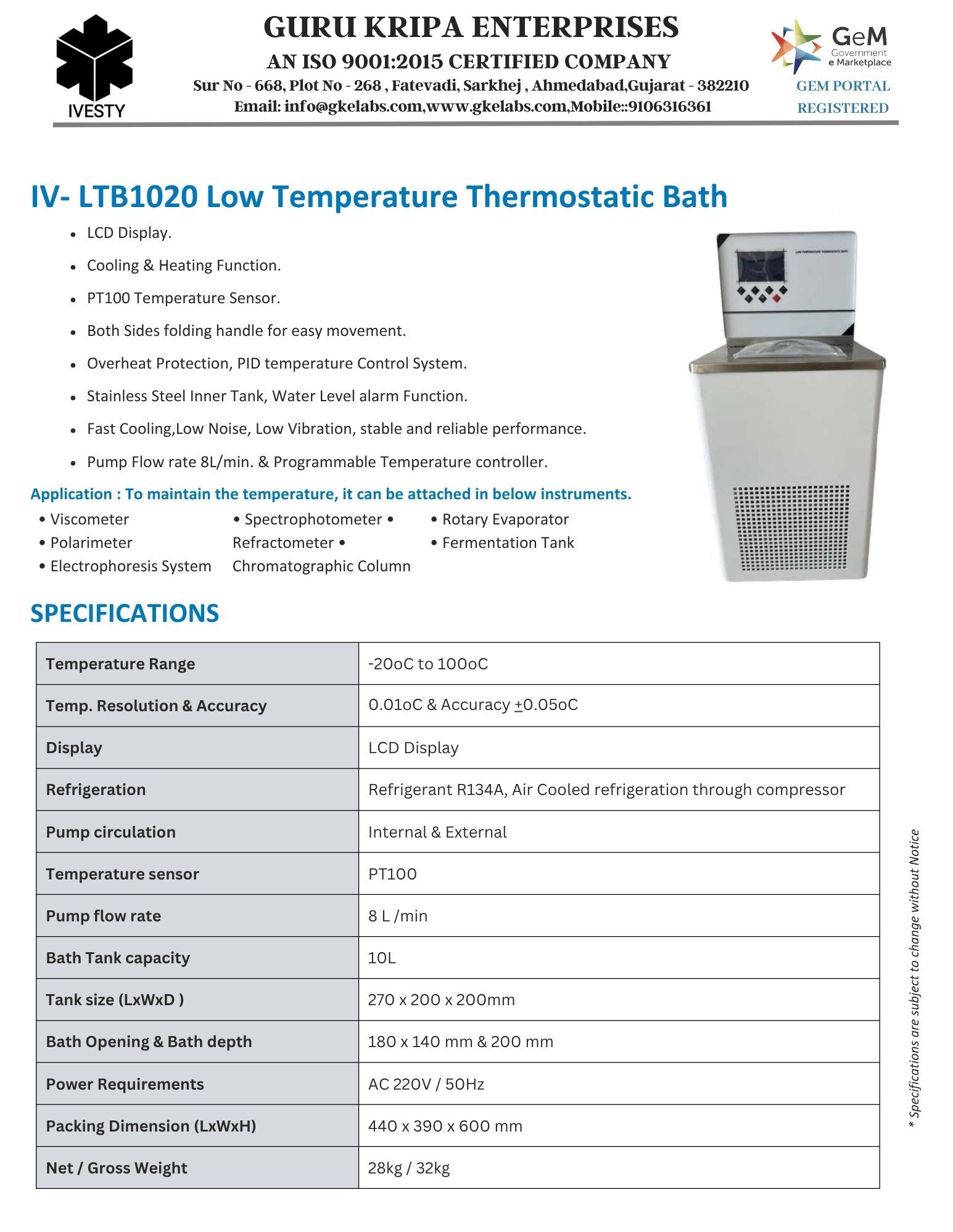 Low Temperature Thermostatic Bath
