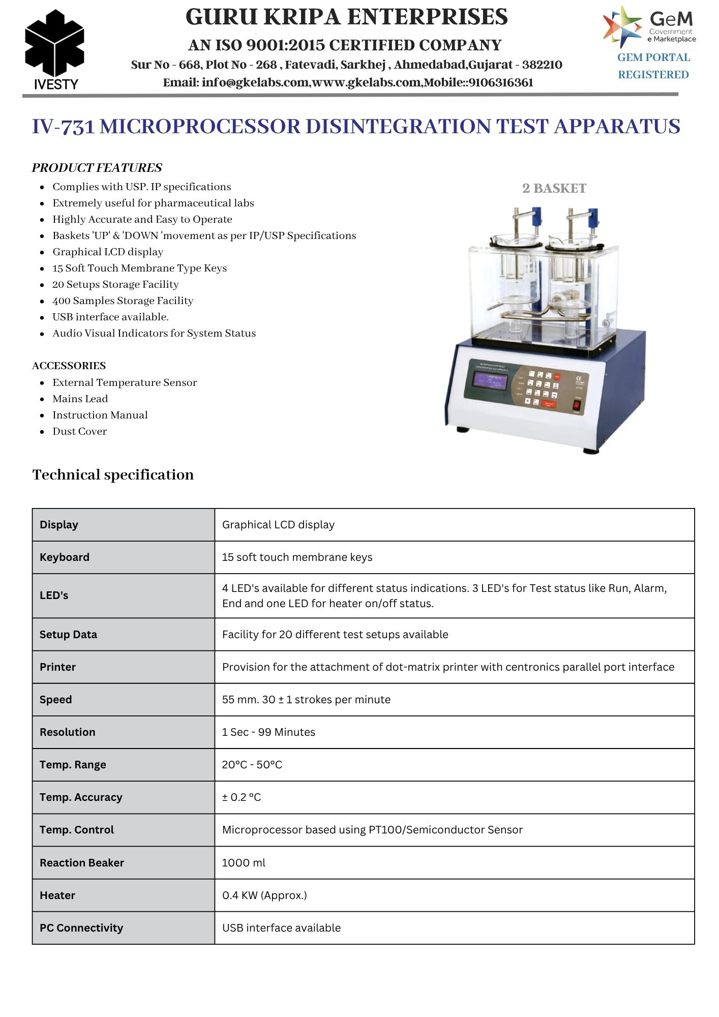 MICROPROCESSOR DISINTEGRATION TEST APPARATUS