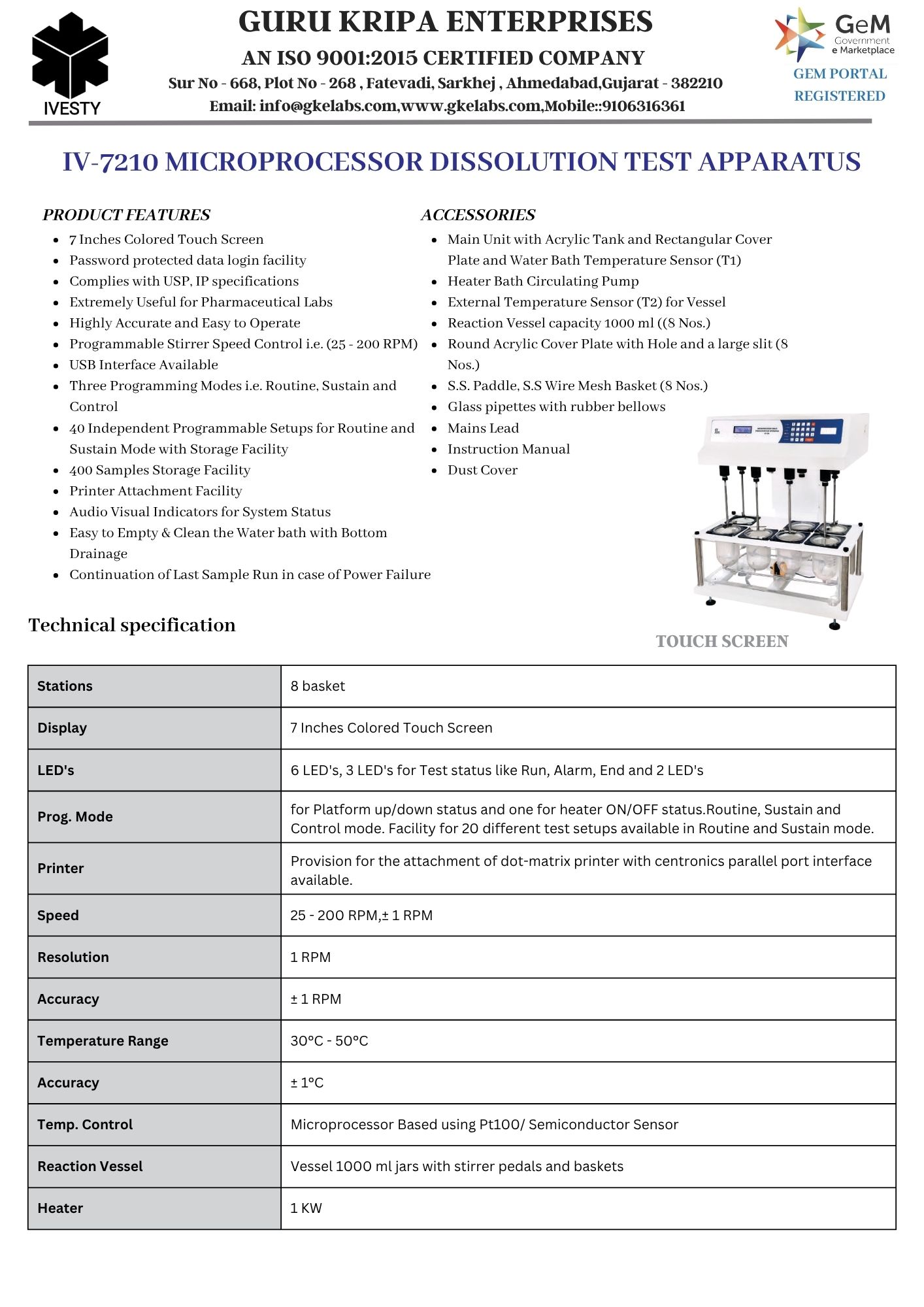 IV-720 MICROPROCESSOR DISSOLUTION TEST APPARATUS