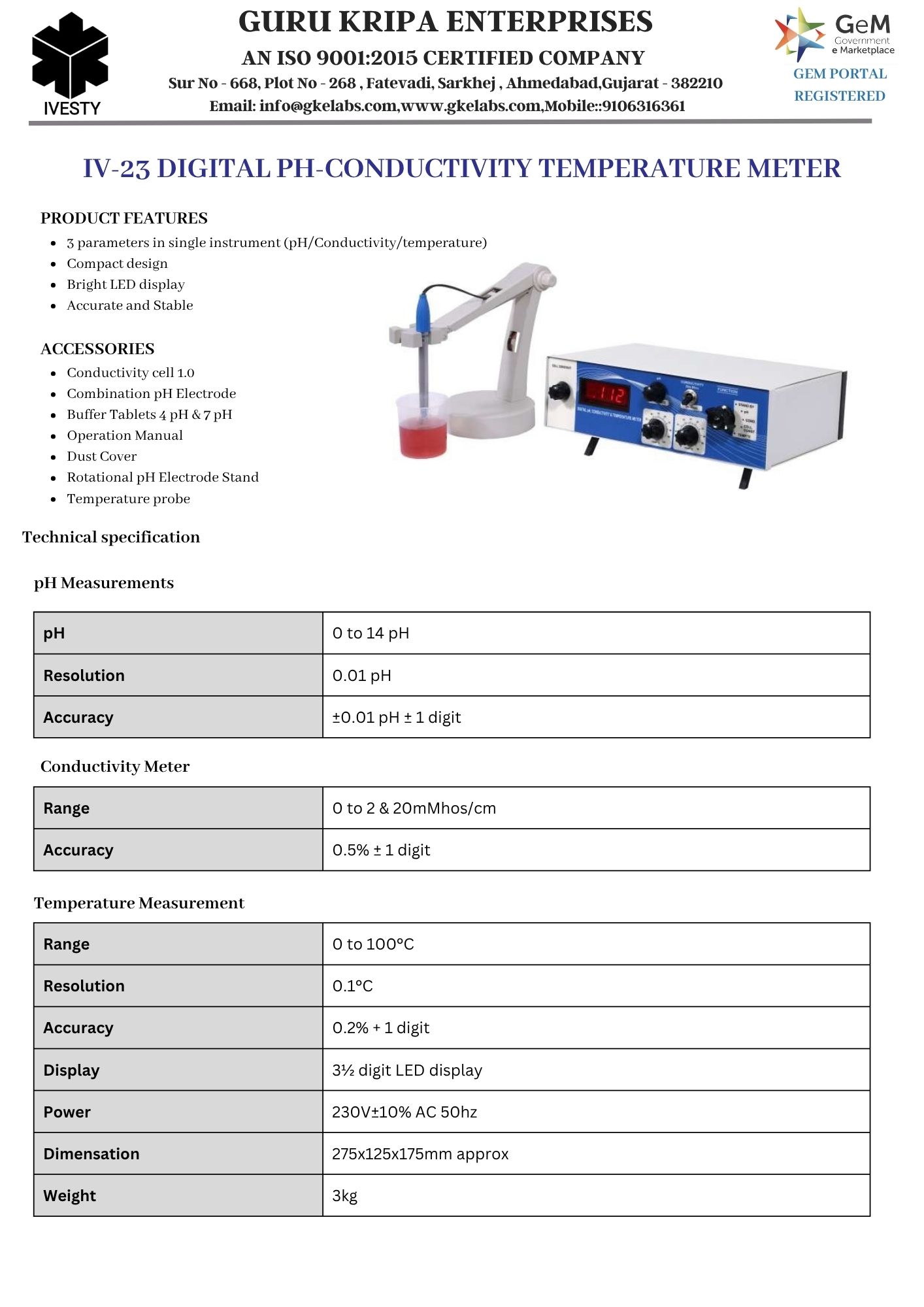 DIGITAL PH-CONDUCTIVITY TEMPERATURE METER