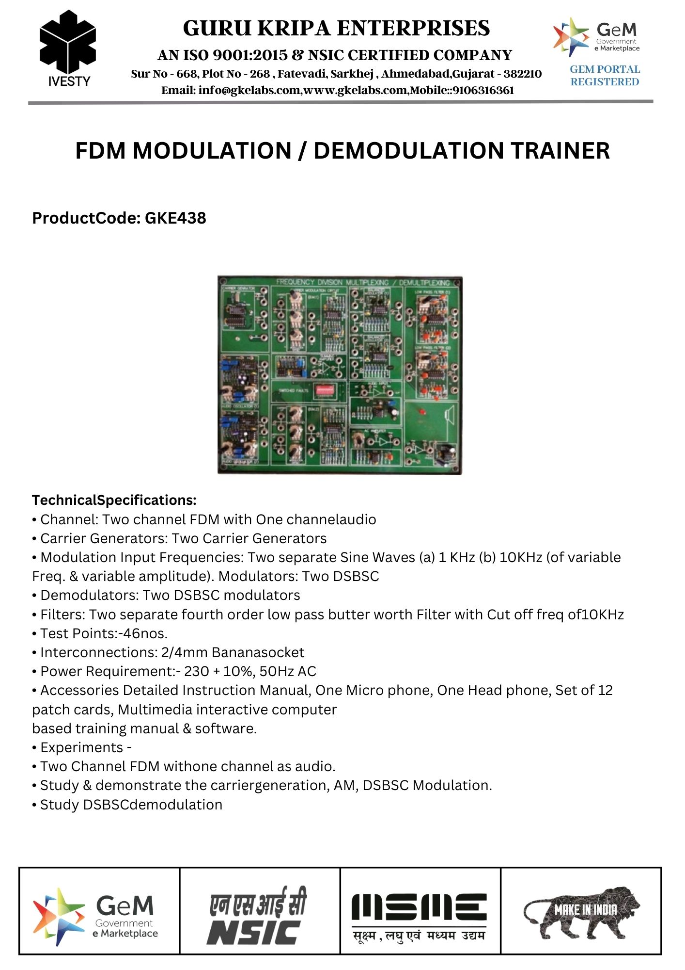 FDM MODULATION / DEMODULATION TRAINER