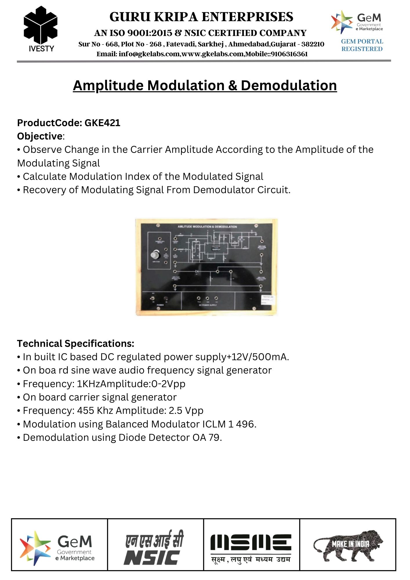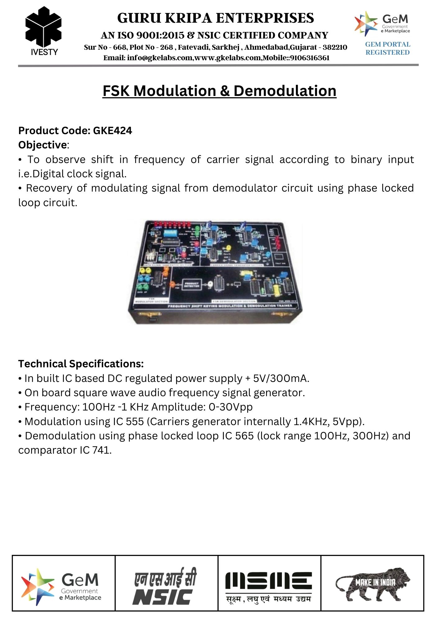 AMPLITUDE SHIFT KEYING MODULATION & DEMODULATION TRAINER