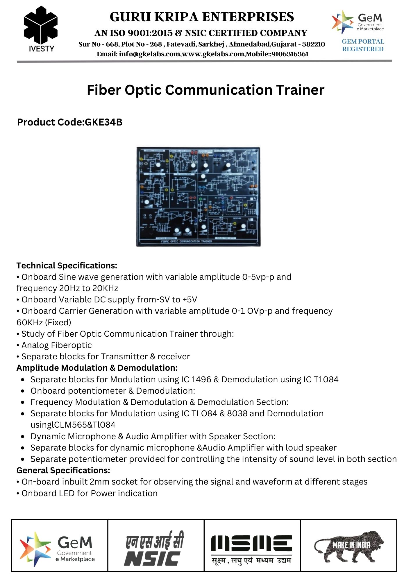 Fiber Optic Communication Trainer