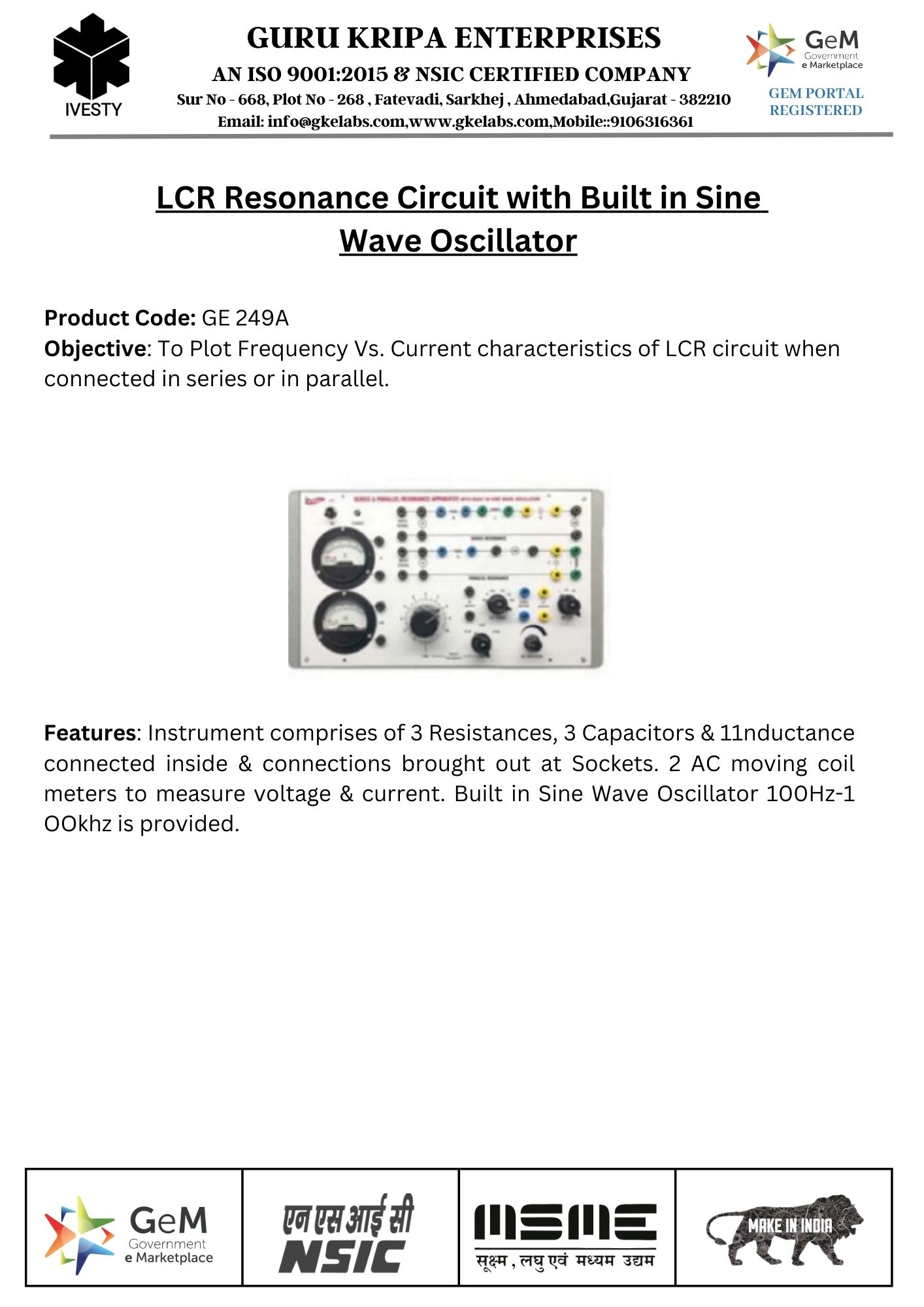 LCR Resonance Circuit with Built in Sine Wave Oscillator