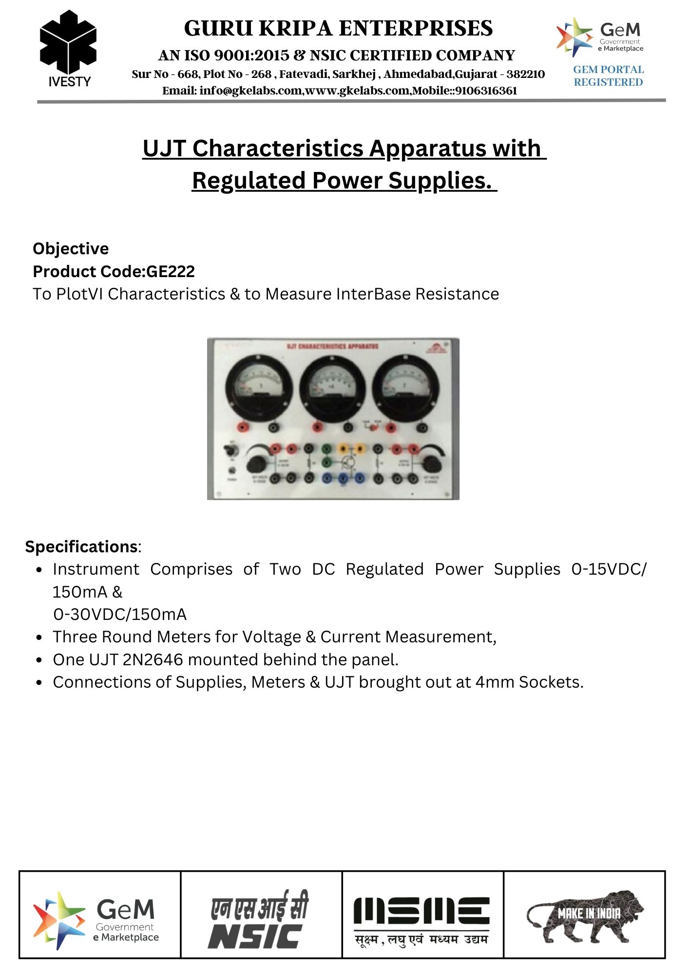 UJT Characteristics Apparatus with Regulated Power Supplies.