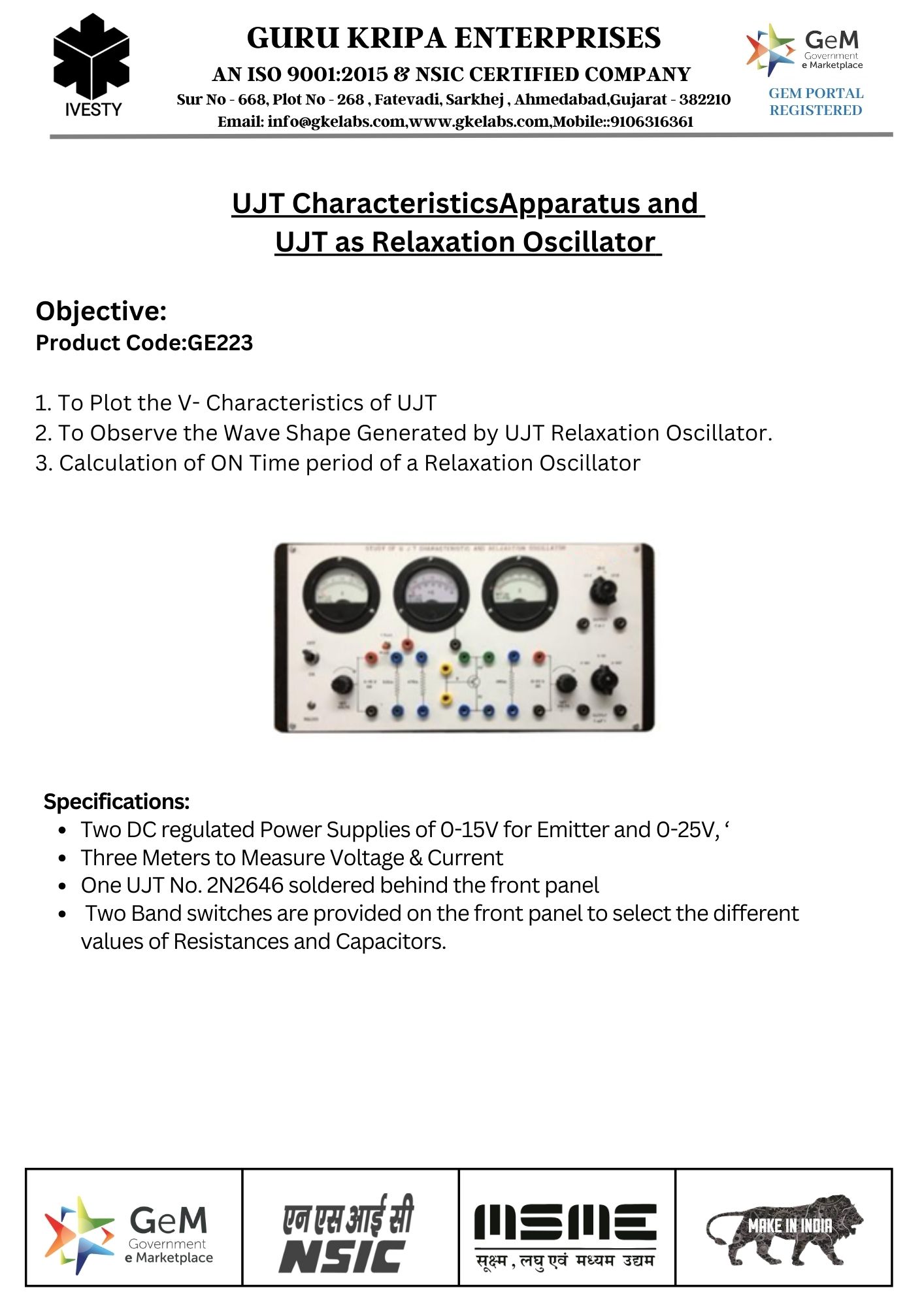 UJT Characteristics Apparatus and UJT as Relaxation Oscillator