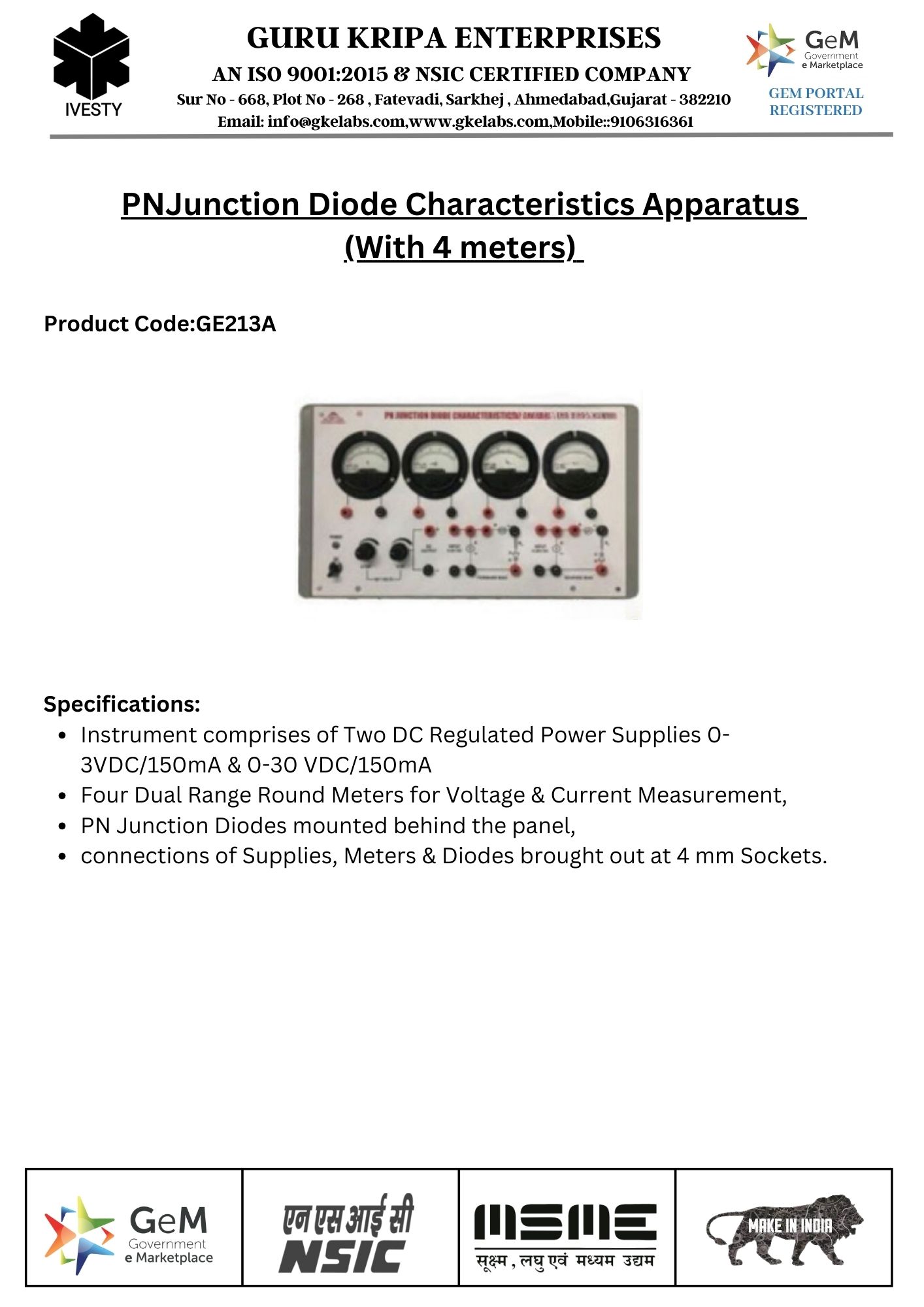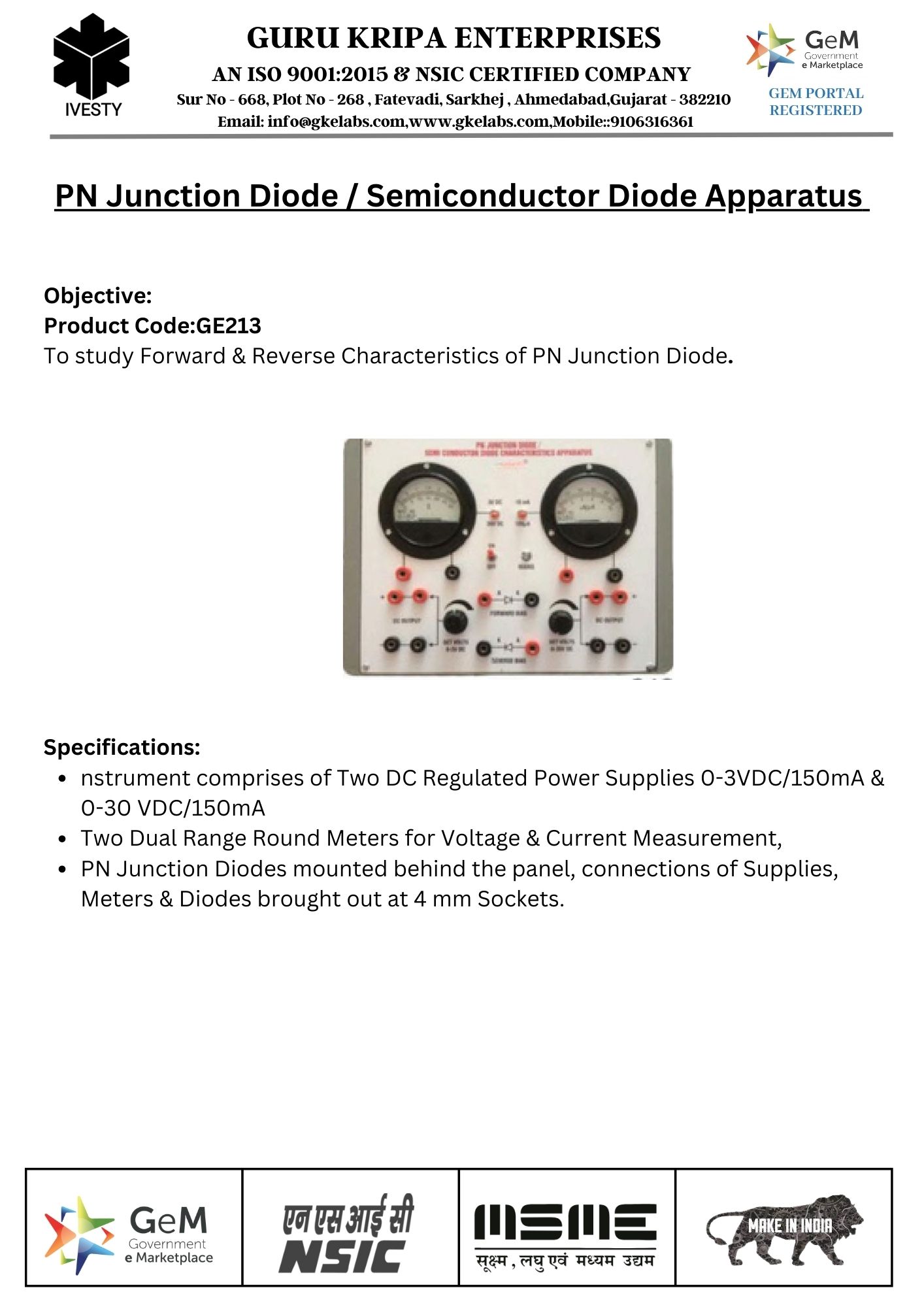 PN Junction Diode Characteristics Apparatus