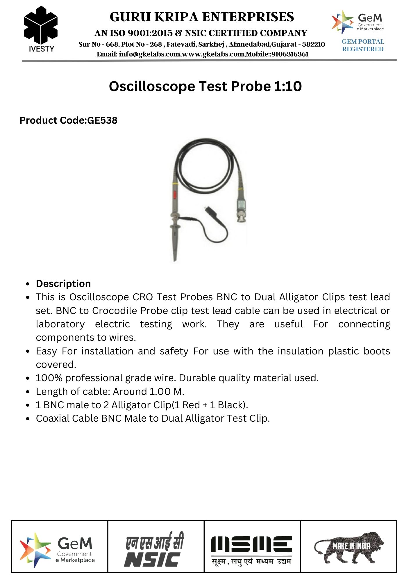 Oscilloscope Test Probe 1:10