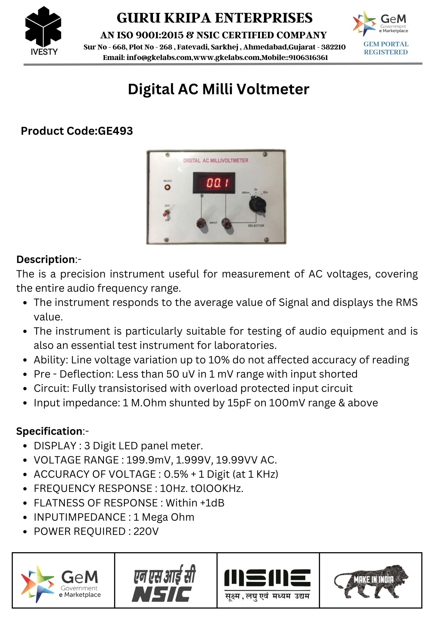 Digital AC Milli Voltmeter