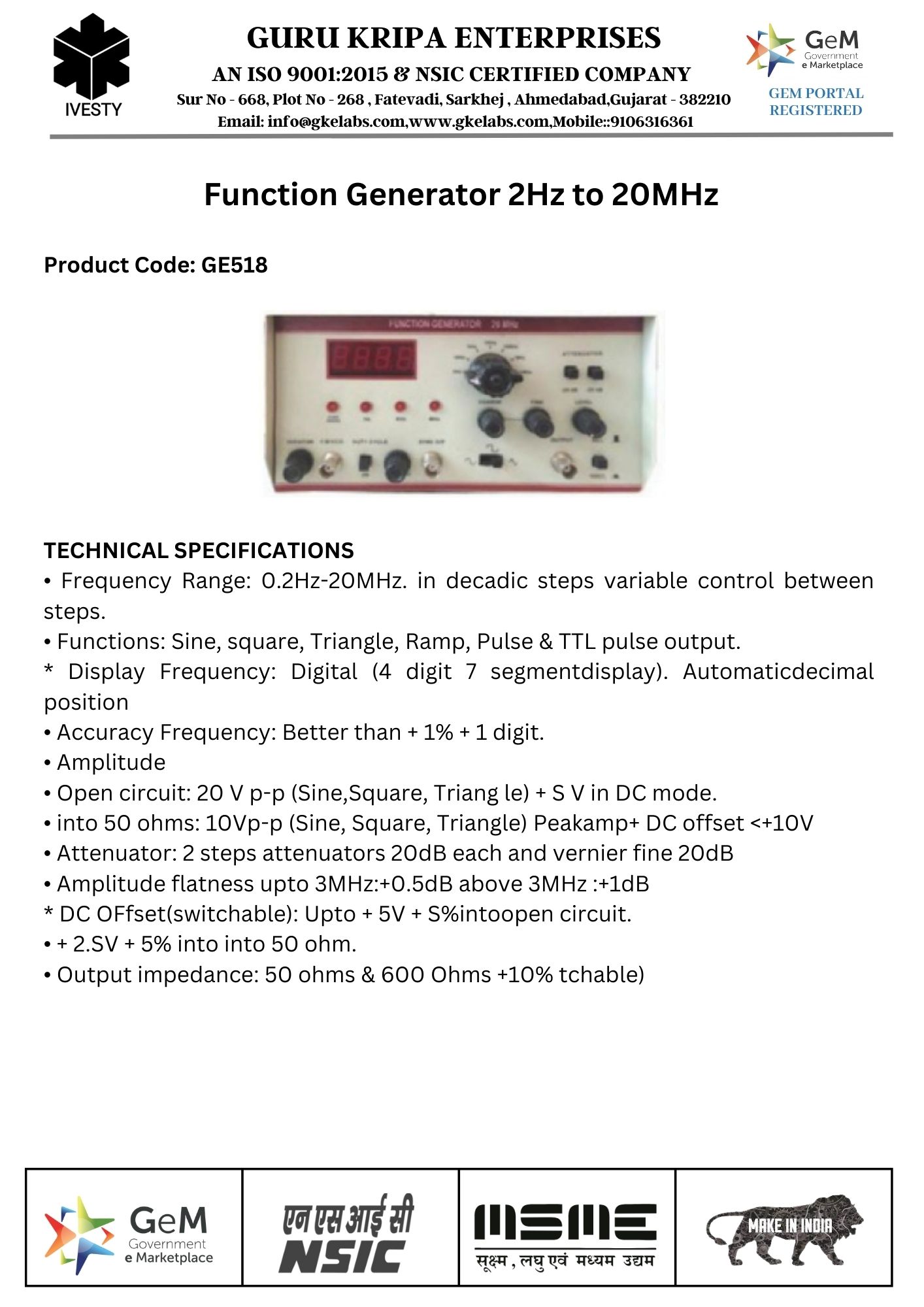 Function Generator 2Hz to 20MHz